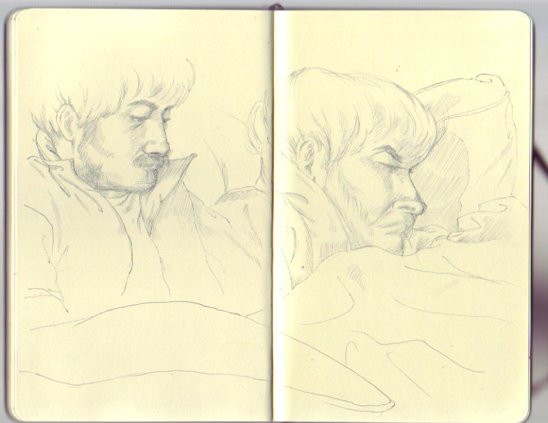And here are some more straightforward sketchbook pages of my girlfriend's pitbull, and my family. Both enjoy spending time on the floor.